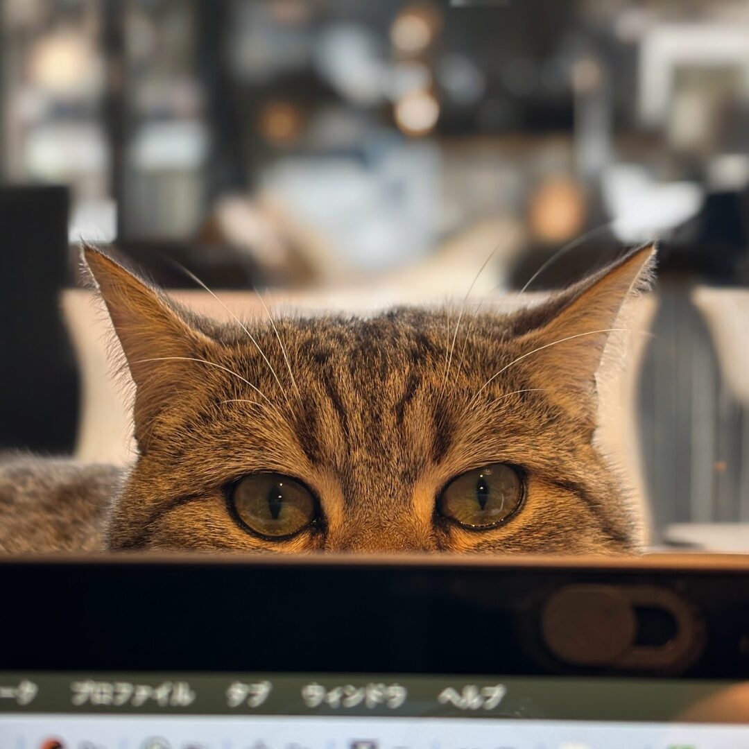 「飼い主、ちゃんと働いてるんやろな?」って感じで見つめてくる。視線が痛い😹