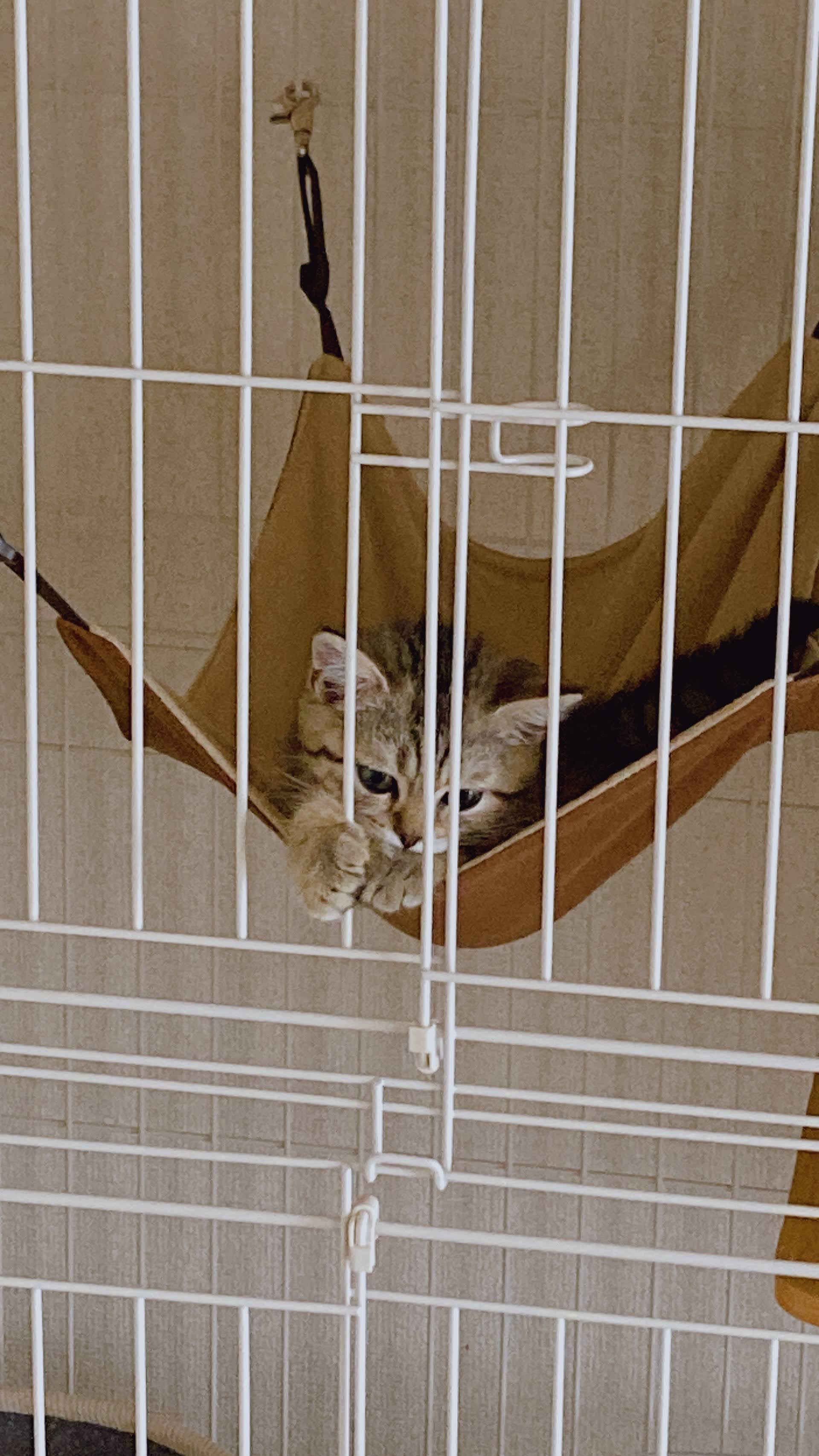 お気に入りはサークルのハンモックで、サークルに入れられたら